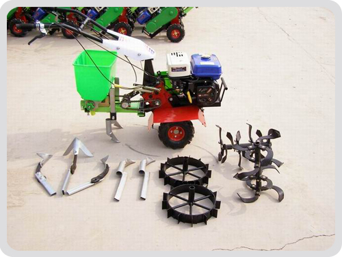 機器標準配置:一套旋耕機、一套播種施肥的作業輪、一個播種施肥耬、一個耘鋤